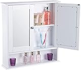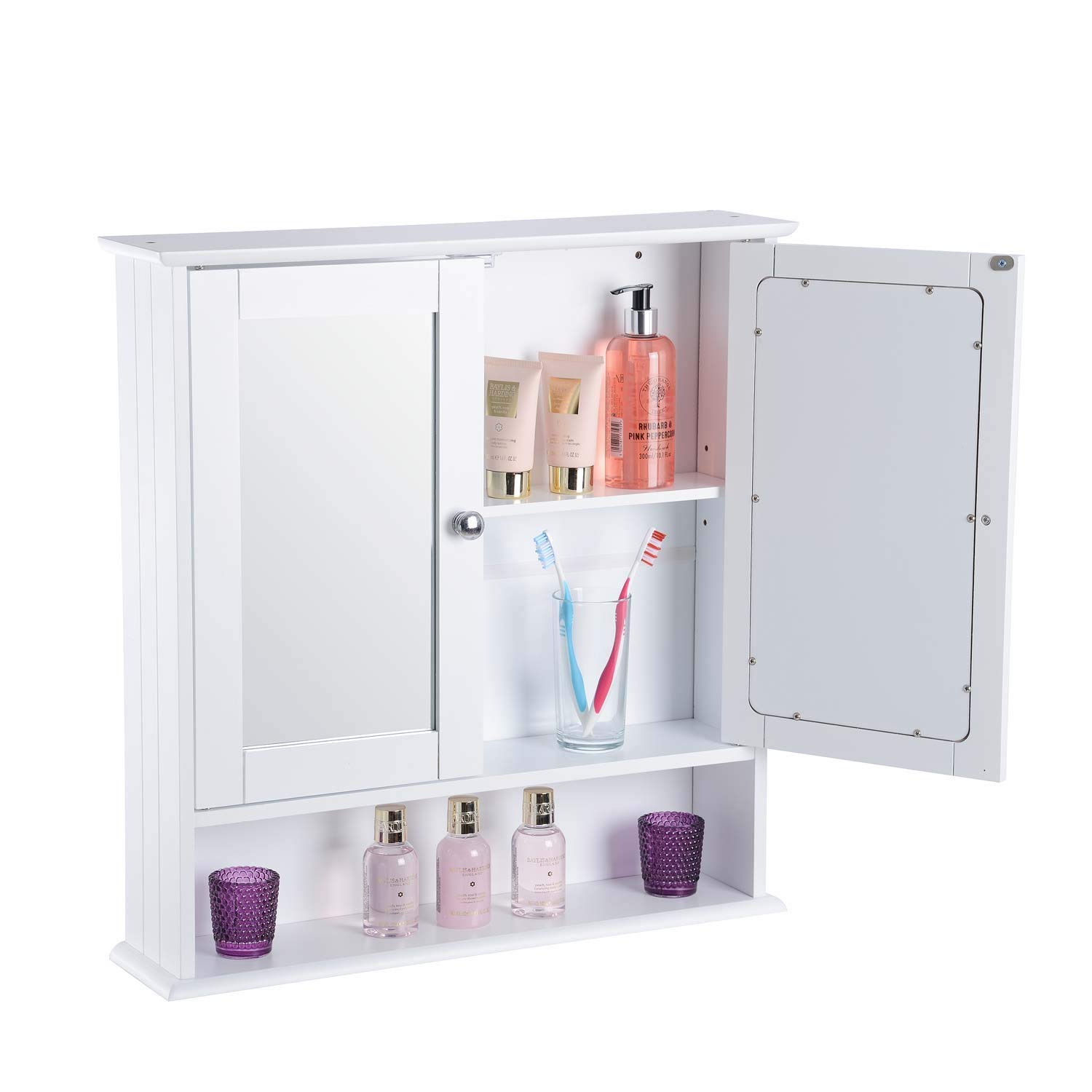 Christow white double mirror wall mounted cabinet, wooden bathroom storage furniture, 2 door cupboard unit with shelf: 4.8/5 based on 38 reviews. 4.9 average based on 27 product ratings. Essentials neatly stored away w/. Great for mounting above a sink, it features mirrored doors with an internal shelf to store your bathroom essentials.