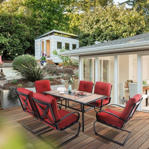 Phi villa patio dining set 7 piece, 6 person outdoor table and chairs with 6 swivel patio chair & 60 x 38 rectangular large metal dining table (1.57 umbrella hole) 3.8 out of 5 stars.